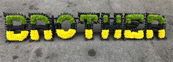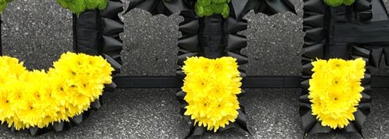 Brother tribute shown here massed in Jamaican Flag colours, created in materials requested by the family. We can recreate this design as shown, or you are welcome to discuss other colour options. The materials used are chosen to best reflect the depth and colour for the desired look.