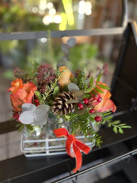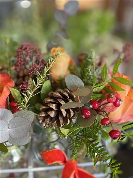 Our festive Cinnamon and Pine Dinky Bottle Set has landed! With Cinnamon coloured roses, cinnamon scented pine cones and skimmia, this makes a lovely Christmas gift.