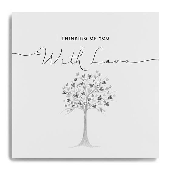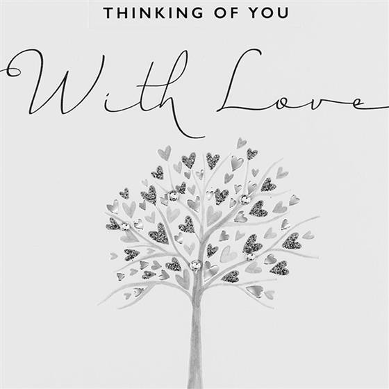 Thinking of You With Love Heart Tree Silver Leaf Card